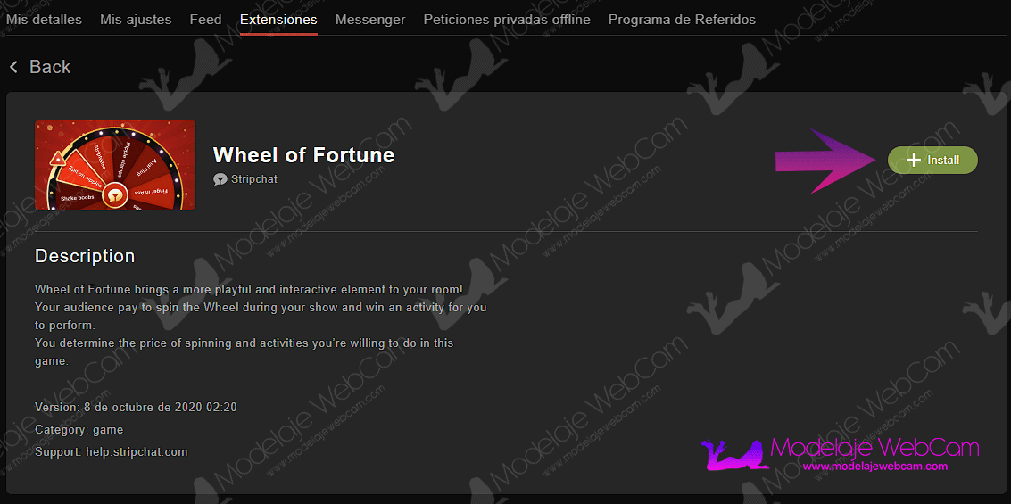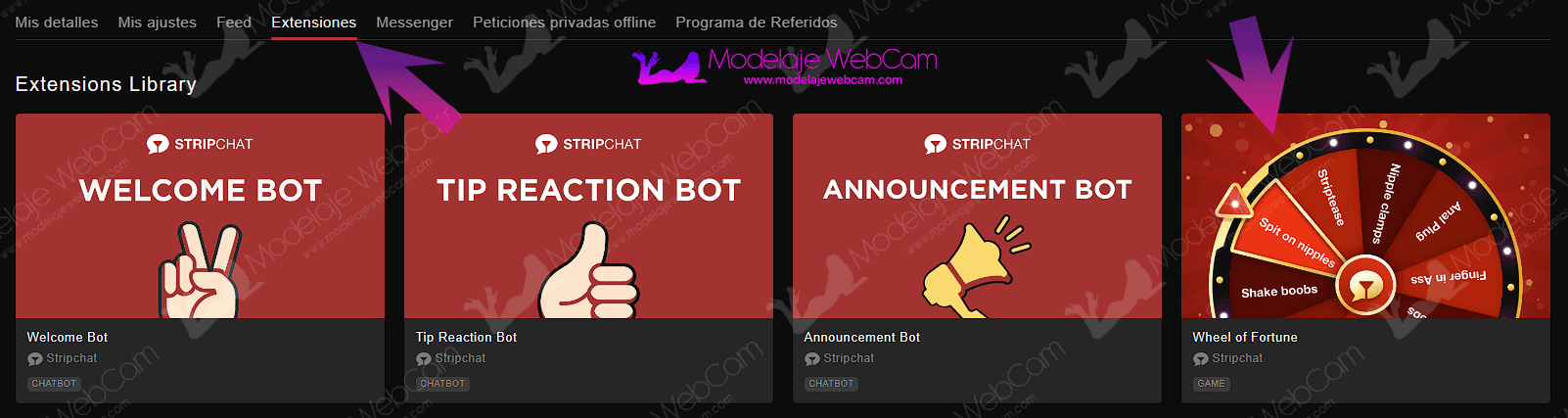 Stripchat ha añadido unas extensiones para la sala de la modelo que permite activar una variedad de juegos y bots. En los juegos están: