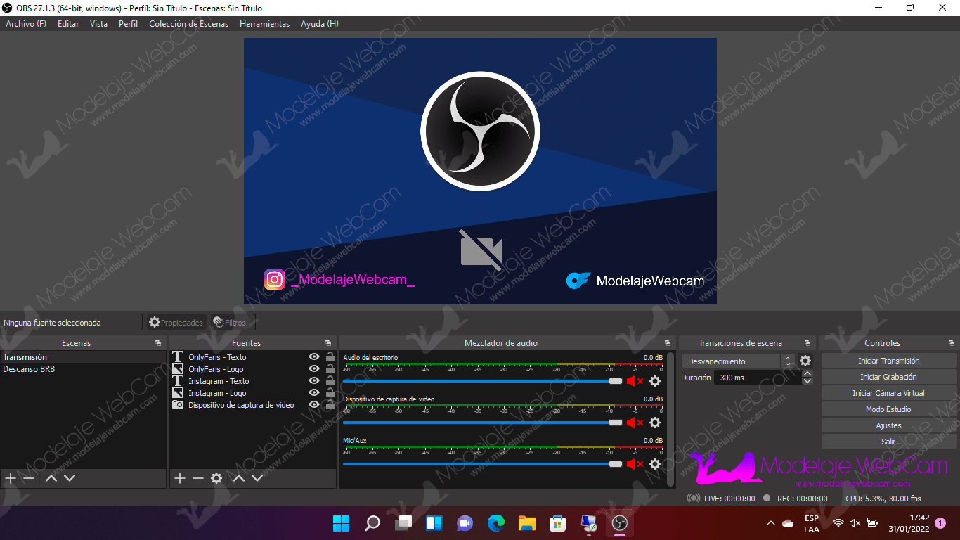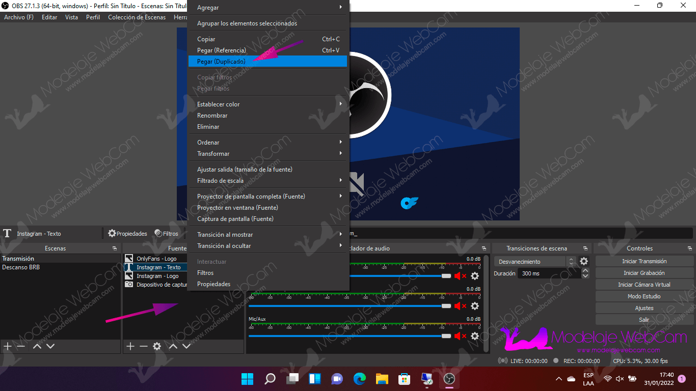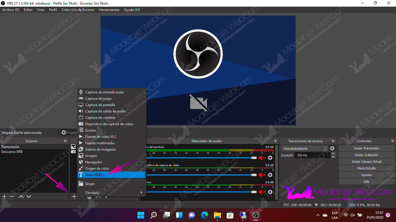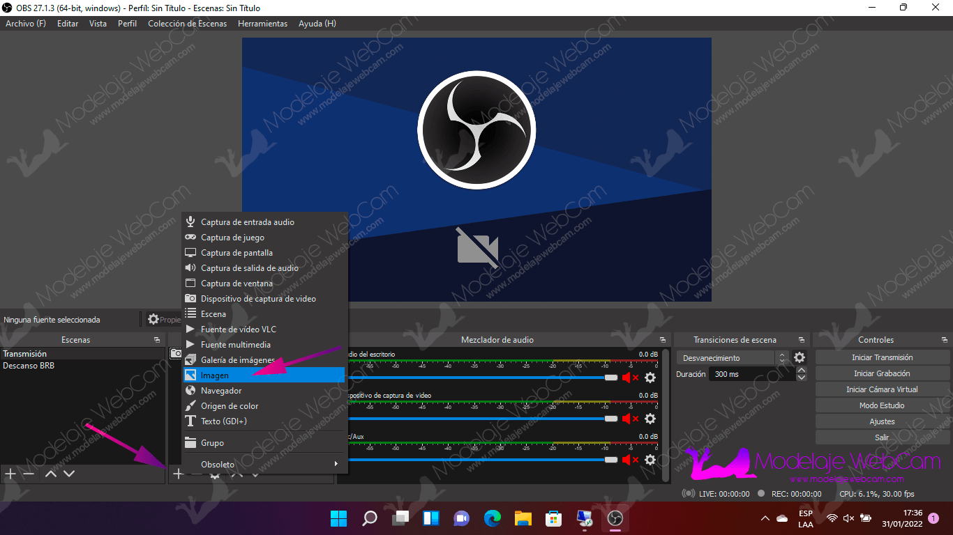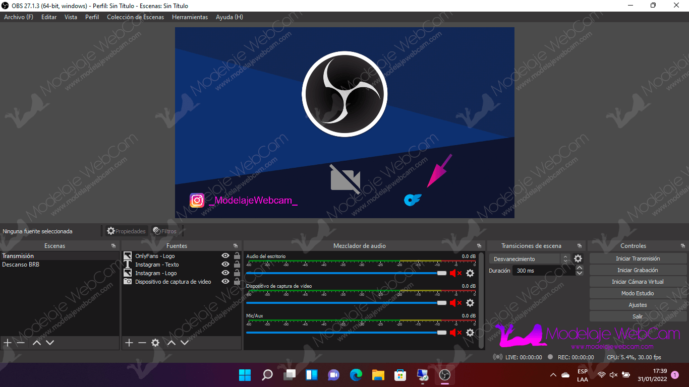 Deberás agregar a OBS las siguientes fuentes: