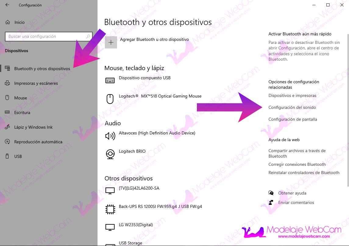 3. En la sección «Bluetooth y otros dispositivos», ve al panel de la derecha y selecciona «Configuración de audio».