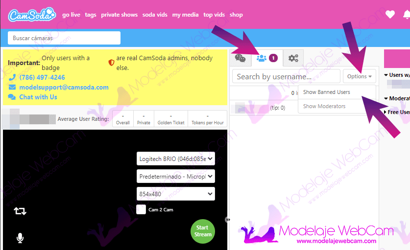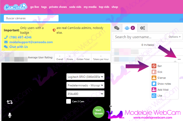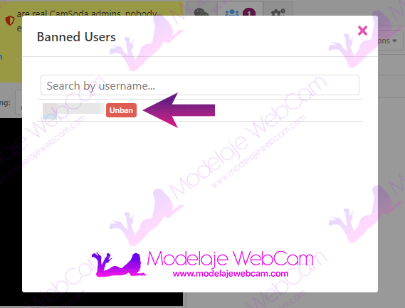 Sepa Cómo bloquear (BAN) y desbloquear (UNBAN) un usuario en CamSoda en caso te este molestando en la sala o te hayas arrepentido en bloquear.