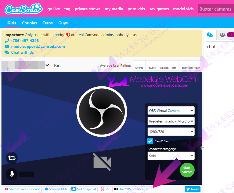 ¿Cómo configurar CamSoda con OBS?