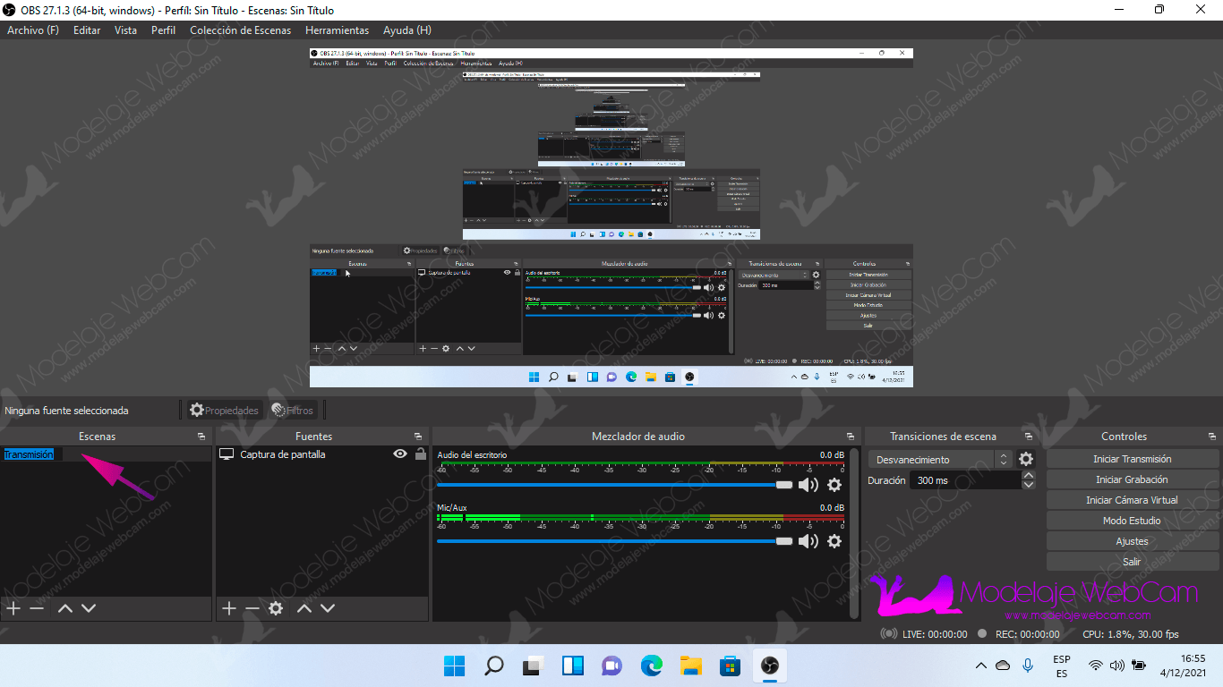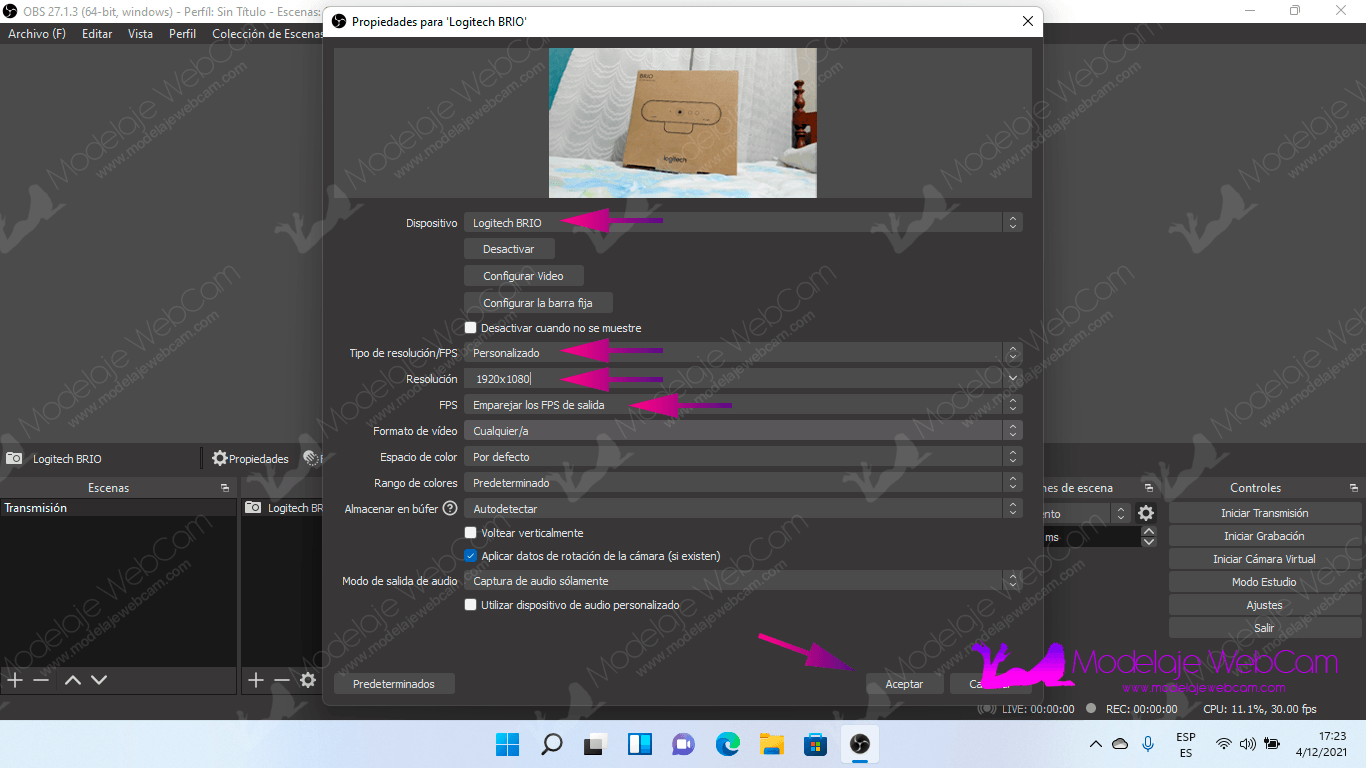 - Agregar entrada de video (Cámara web) a OBS