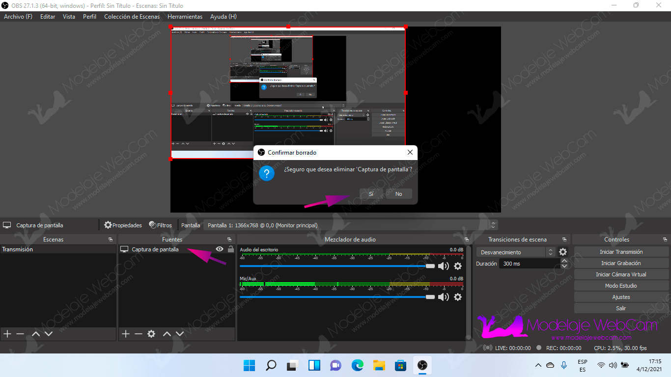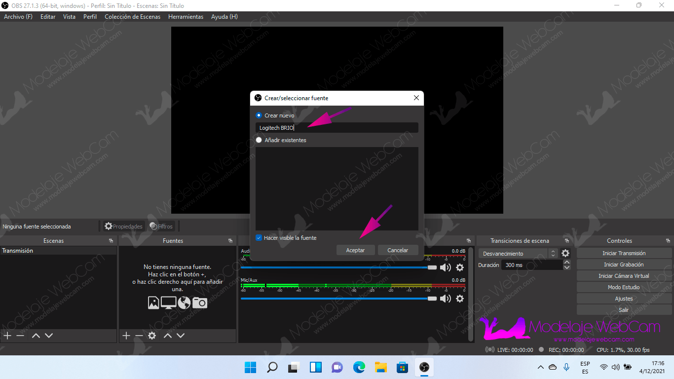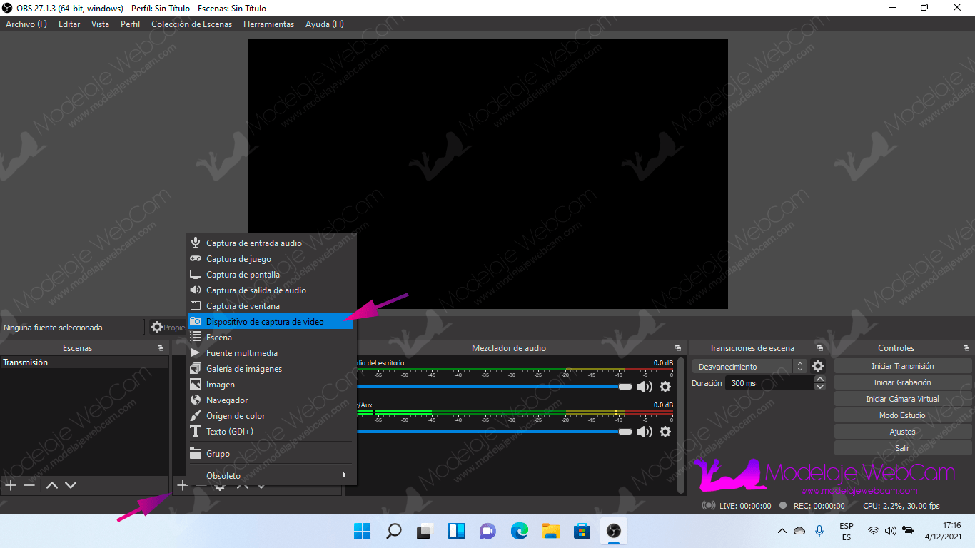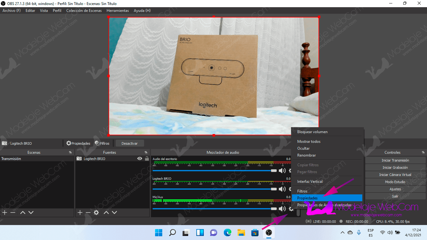 Agregar entrada de video (Cámara web) a OBS
