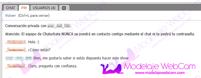 Sepa cómo enviar un mensaje privado o PM (Private Message) en Chaturbate para que la conversación solo sea entre la modelo y el usuario.