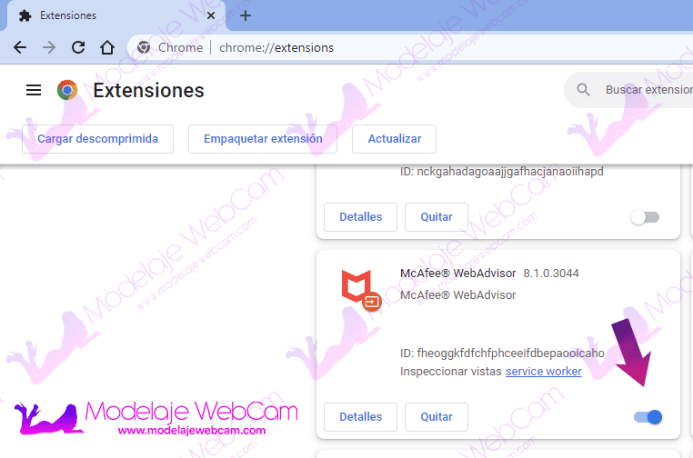 NOTA: Es posible que en Google Chrome y otros navegadores tengas que ir a la página de complementos para habilitar McAfee WebAdvisor.
