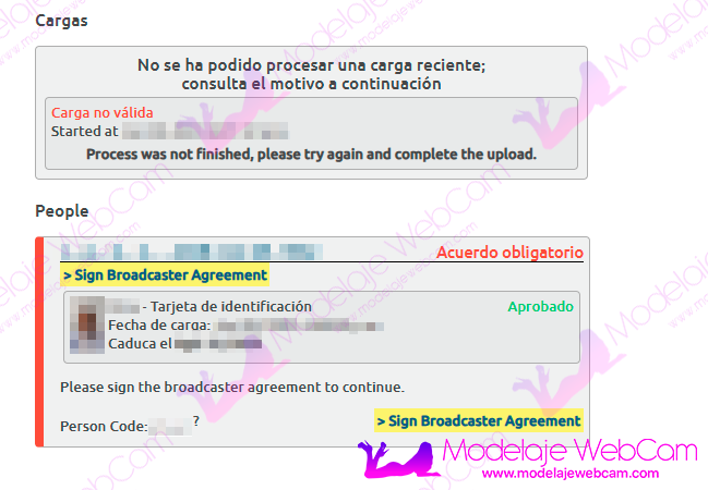 Si todo sale bien, también tendrás que firmar el acuerdo para transmitir como modelo webcam que deberás hacer clic en «Sign Broadcaster Agreement».
