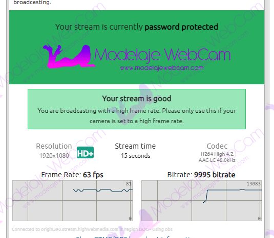 Si todo va bien y la conexión es la óptima, Chaturbate mostrará todo las estadísticas de color verde.