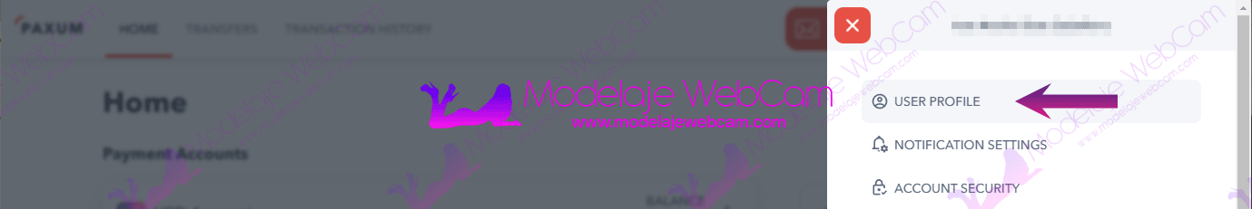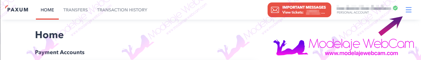 Cuando te registras en una plataforma para transmitir como modelo webcam, la página te ofrecerá una opción para configurar los «Pagos». Dentro de «Pagos», tendrás varias opciones para recibir tus ganancias e incluso Paxum estará disponible. Si elegiste «Paxum» como método de pago, la plataforma te preguntará cuál es tu cuenta para recibir tus pagos.