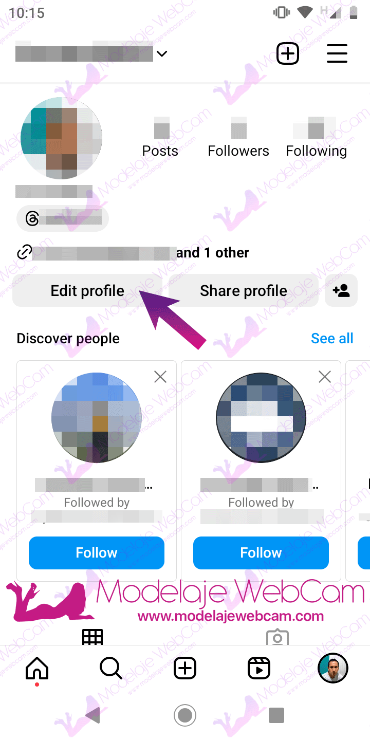 1. Once you have Instagram installed on your Android or iOS mobile device, go to your Instagram profile and press “Edit profile”.