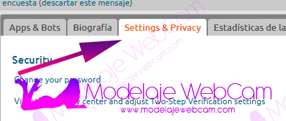 1) Login to your Chaturbate account and go to “Settings and Privacy”.