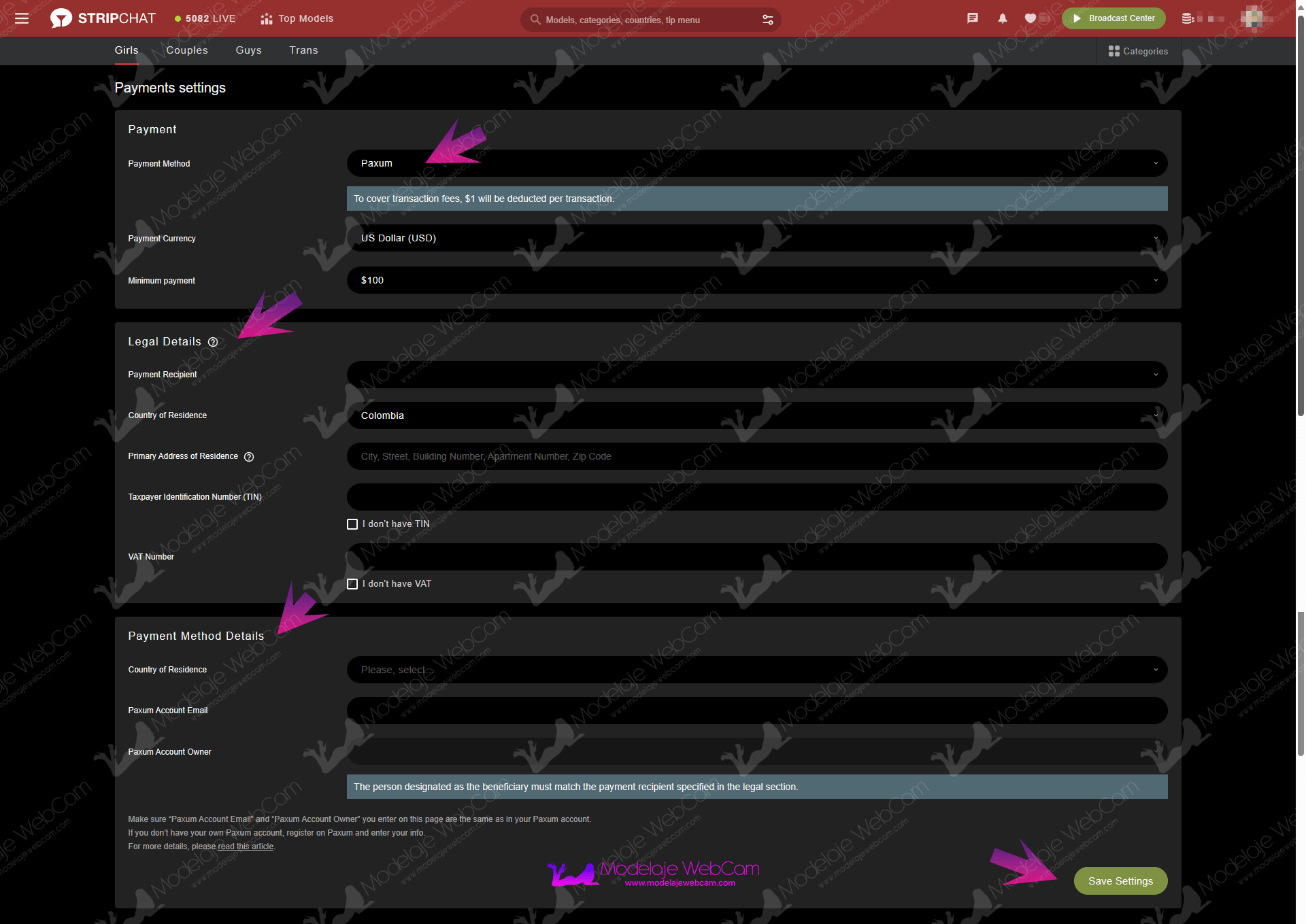IMPORTANT: Please note that the person receiving payments on Stripchat must be the same as Paxum. If both accounts do not have the same first and last names, your payments may be suspended.
