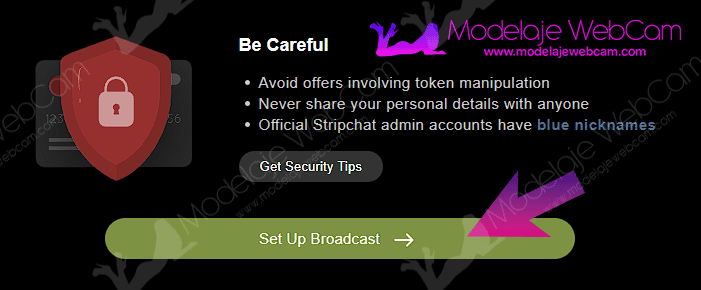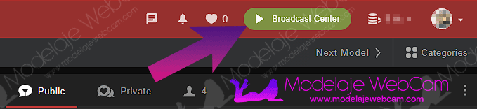 1. Log in with your model account on StripChat and press the green button that says “Broadcast Center”.