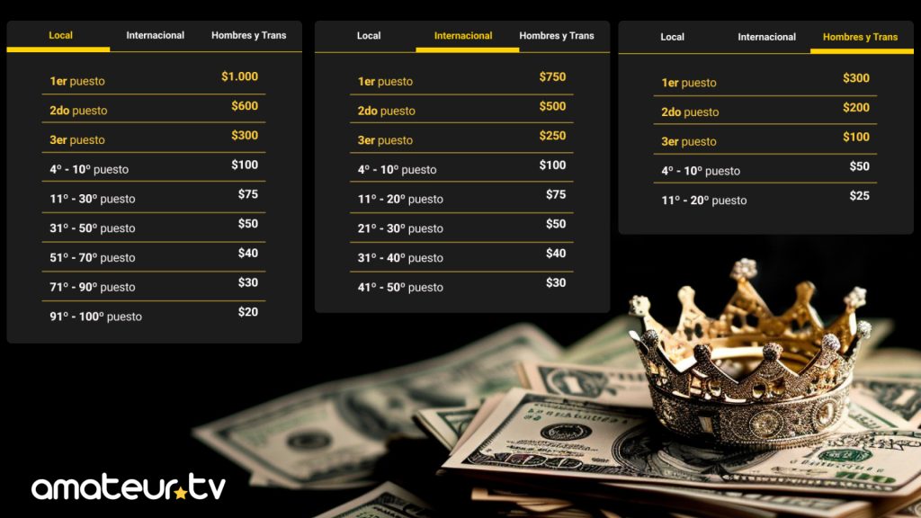 Amateur entregará grandes premios individuales sin precedentes en la historia de los rankings. Se trata de un gran ranking en el que podrás subir sumando puntos. Estos puntos los podrás conseguir a lo largo de todo el mes cuando realices las siguientes acciones: