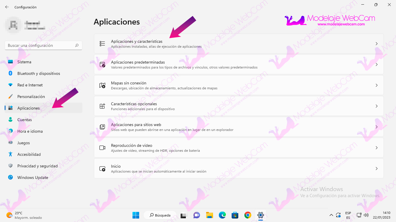 2. En el menú de la izquierda selecciona «Aplicaciones» y luego «Aplicaciones y características».