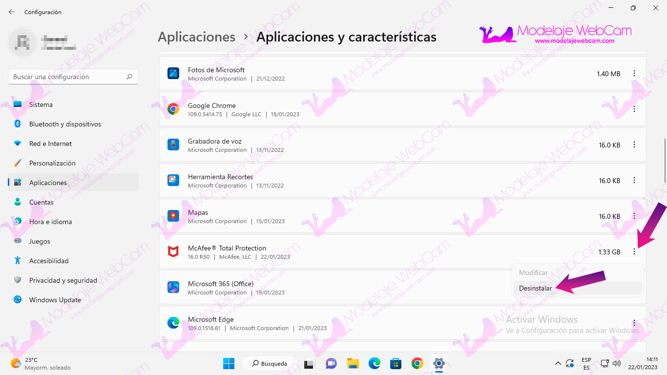 3. Busca la marca del antivirus que deseas desinstalar, una vez encontrado, selecciona los «3 puntos verticales» y selecciona la opción «Desinstalar».