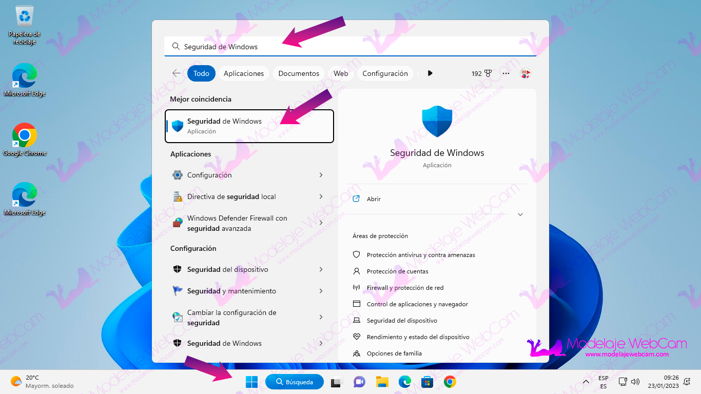 1. Haz clic en «Inicio», escribe «Segurida de Windows» y haz clic en la aplicación con la imagen de un escudo azul.
